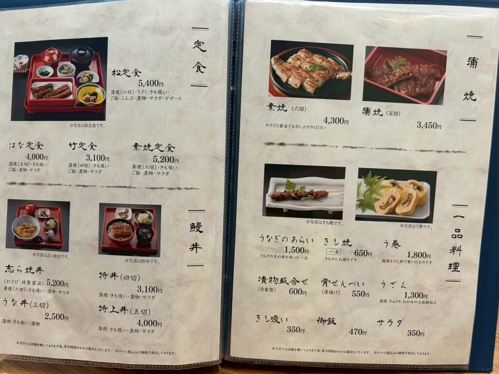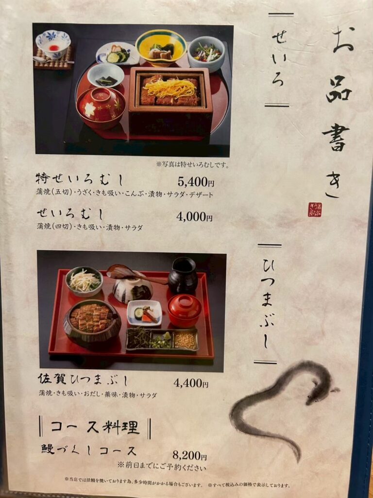 佐賀市・本庄うなぎ屋北部店のメニュー